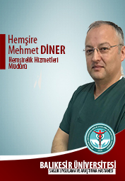 HEMŞİRELİK HİZMETLERİ MÜDÜRÜ Hem. Mehmet DİNER 1979 yılında Trabzon-Şalpazarı ilçesi Geyikli köyünde doğmuştur. İlkokulu 1990 yılında Antalya’da, Ortaokulu 1993 yılında Samsun Bafra’da tamamlamıştır. Lise eğitimini Samsun Bafra SML (Sağlık Memurluğu bölümü) 1997 yılında tamamlamıştır. Anadolu Üniversitesi İktisat Fakültesi Kamu Yönetimi Bölünden 2015 yılında mezun oldu. Anadolu Üniversitesi AÖF Sağlık Kur. İşletmeciliği Bölümünden ise 2018 yılında mezun olmuştur. 1997-2009 yılları arasında İstanbul’da birçok Özel sağlık kurumunda çalıştı. 2009 yılında Balıkesir Üniversitesi Sağlık Uygulama ve Araştırma Hastanesinde Hemşire olarak göreve başladı. 08.05.2020 yılından itibaren Hemşirelik Hizmetleri Müdürü görev yapmaktadır. |