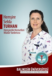 HEMŞİRELİK HİZMETLERİ MÜDÜR YARDIMCI Hem. Selda TURHAN 1976'da Balıkesir' de doğdu. İlk ve ortaöğrenimini Balıkesir'de tamamladı. 1994'te Balıkesir Atatürk Sağlık Meslek Lisesi'ni bitirdi. 1995'de Celal Bayar Üniversitesi Hafsa Sultan Hastanesi'nde göreve başlayarak 1998'e kadar Cerrahi Servis Hemşireliği yaptı. Aynı hastanede 1999-2002 tarihleri arasında Acil Servis Hemşireliği, 2003-2011 tarihleri arasında da Acil Servis Sorumlu Hemşireliği yaptı. Atatürk Üniversitesi Sağlık Bilimleri Fakültesi Hemşirelik Bölümünü 2011'de bitirdi. Anadolu Üniversitesi İşletme Fakültesi İşletme Bölümünü 2012'de tamamlayarak Celal Bayar Üniversitesi Hafsa Sultan Hastanesi TİG Biriminde görev yaptı. 2013'te Balıkesir Üniversitesi Sağlık Uygulama ve Araştırma Hastanesinde çalışmaya başlayarak 2014 Temmuz ayından itibaren Hemşirelik Hizmetleri Müdür Yardımcısı olarak devam etmekte olup, halen Dokuz Eylül Üniversitesi Sağlık Bilimleri Enstitüsü Tıbbi Bilişim Bölümünde Yüksek Lisans yapmaktadır. |