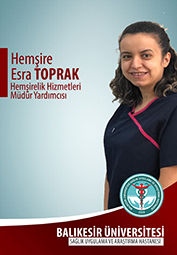 HEMŞİRELİK HİZMETLERİ MÜDÜR YARDIMCI Hem. Esra TOPRAK 1988’de Balıkesir’de doğdu. İlköğretim ve lise öğrenimini Balıkesir’de tamamladı. 2010 yılında Balıkesir Üniversitesi Bandırma Sağlık Yüksekokulu Hemşirelik Bölümünden mezun oldu. 2010 yılı Ağustos ayında Balıkesir Özel Sevgi Hastanesinde yenidoğan yoğun bakım hemşiresi olarak işe başladı. 2011 yılı Mart ayında İstanbul Özel Gayrettepe Florence Nightingale Hastanesinde yenidoğan yoğun bakım hemşireliği yaptı. Yine aynı yıl Eylül ayında Bursa Devlet Hastanesine atandı ve koroner yoğun bakım hemşireliği yaptı. 2012 yılı Eylül ayında Balıkesir Üniversitesi Sağlık Uygulama ve Araştırma Hastanesine atandı. Kalp damar cerrahisi ve kardiyoloji servisinde görev aldı. 2014 yılında aynı hastanenin kardiyoloji servis sorumlu hemşireliğine görevlendirildi. 2017 yılı Şubat ayında Ahmet Yesevi Üniversitesi Sosyal Bilimler Fakültesi Sağlık Kurumları İşletmeciliği Yüksek Lisansını tamamladı. 2019 yılı Kasım ayından itibaren Hemşirelik Hizmetleri Müdür Yardımcısı olarak devam etmekte olup, evli ve 2 çocuk annesidir. |