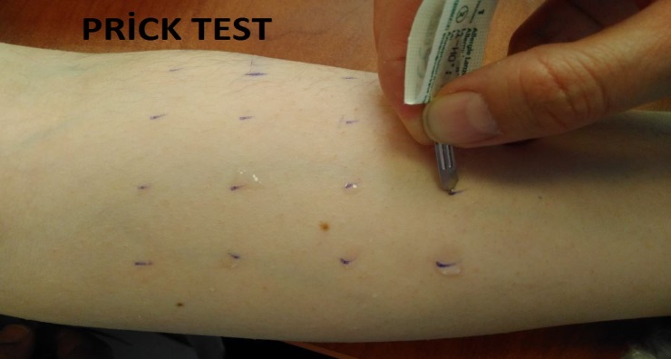 Sıvı şeklinde olan test solüsyonu kolun dirsekten itibaren iç kısmına damlatılır ve lanset adı verilen ince bir iğne ile cilt içine girmesi sağlanır. Hastanın kendine özgü deri reaktivitesini saptamak amacı ile aynı zamanda pozitif ve negatif olmak üzere iki kontrol testi uygulanır. Cilt tepkisi 15 dakika sonra değerlendirilir. Allerjen damlatılan yerlerde şişlik ve çevresinde kırmızılık olması testin pozitif olduğunu göstermektedir. Bu bulgu kişinin klinik verileri ile birlikte değerlendirilmektedir. Alerji testi öncesinde, kişinin en az 7 gün alerji ilacı (antihistaminikler), son 3 gün grip ve soğuk algınlığı ilacı kullanmamış olması gerekir.