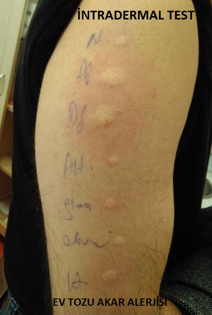 Prick test ile tanı konulamayan fakat belirgin şikayeti olan hastalara uygulanan bir testtir. Üst kol dış bölümü, deltoid kas üzerine insülin enjektörüyle 0.01-0.02 ml dozunda deri içine antijen verilerek yapılır. Cilt tepkisi 15 dakika sonra değerlendirilir. Negatif çıkması durumunda bu alerjene karşı duyarlı olmadığınız net bir şekilde söylenebilir.